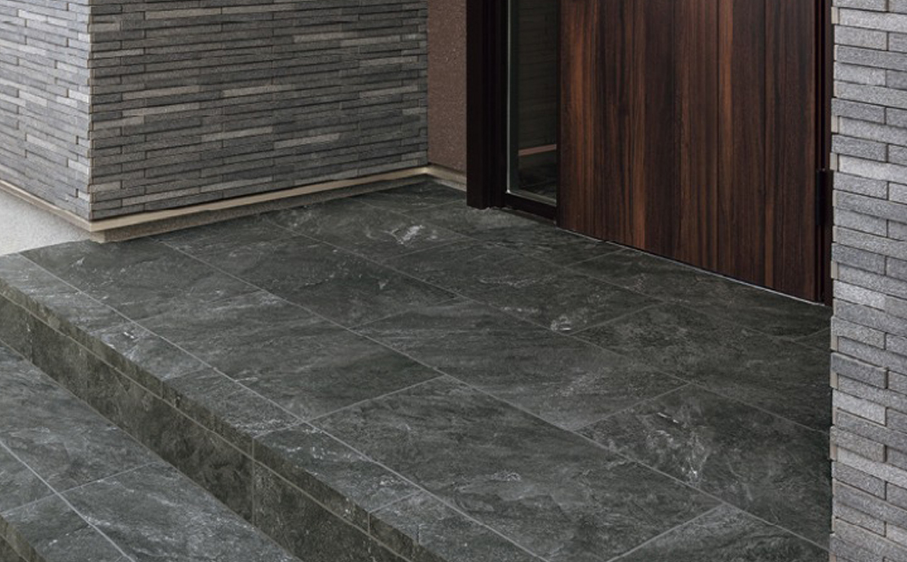 自然石の優雅な風合いを緻密に再現した外床タイル。大理石、砂岩、スレート、クォーツサイトの4つのテクスチャを高精細加飾で表現し、どんな外構にも調和する洗練されたデザインを実現します。300角と300×600角のサイズで、住宅から商業施設まで幅広く対応。美しさと実用性を兼ね備えたシリーズです。