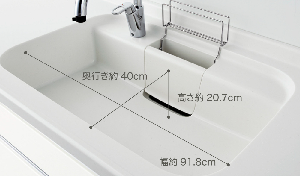 ひろびろ、だから、はかどる。キレイもかなえる人造大理石シンク。