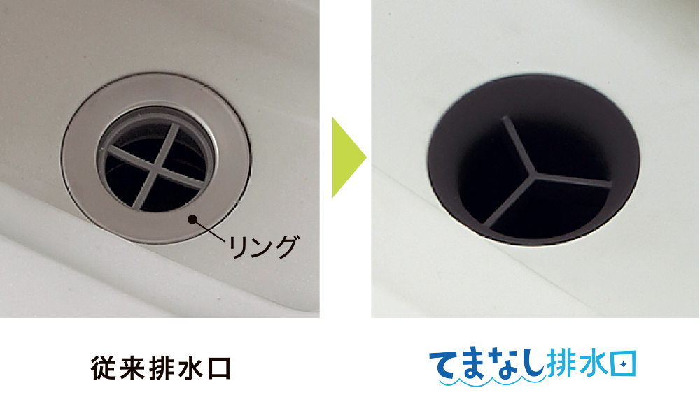 接合部のリングを無くした、すっきりとした排水口。 汚れがたまりやすい溝がないので、お手入れが簡単です。