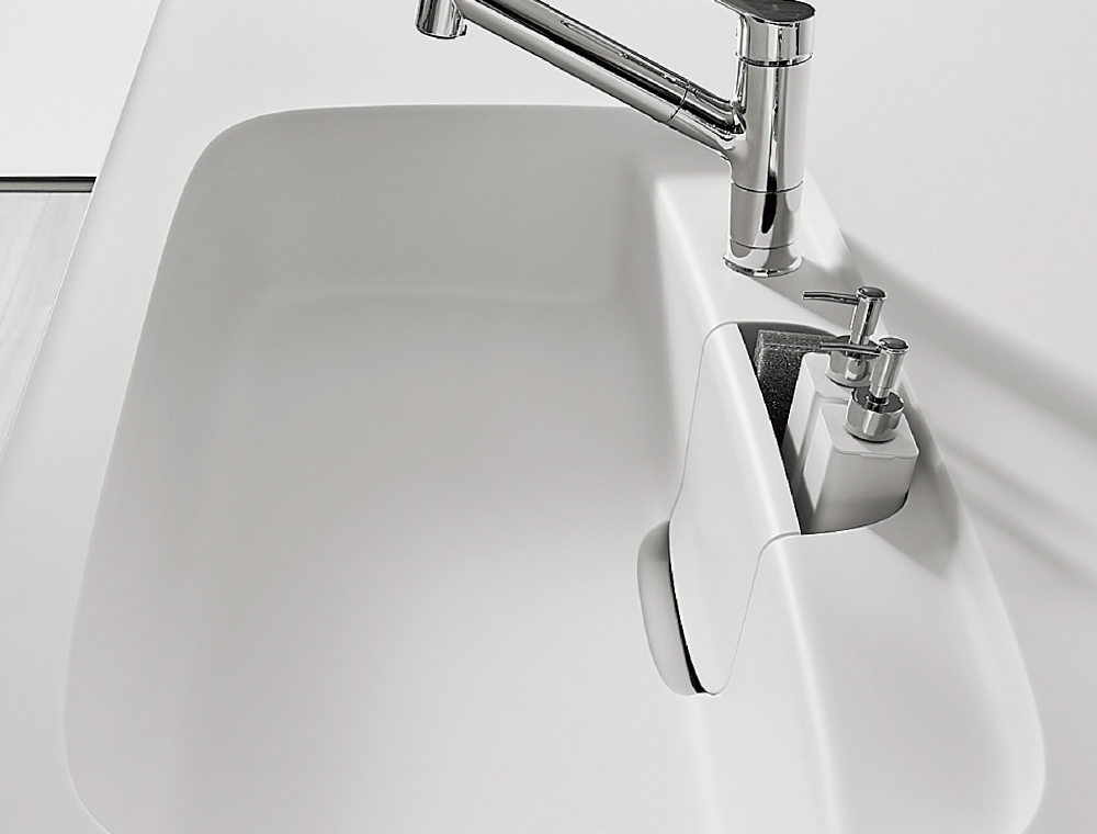 大容量のポケットとシンク内のどこでも使える2つのシンクサポート