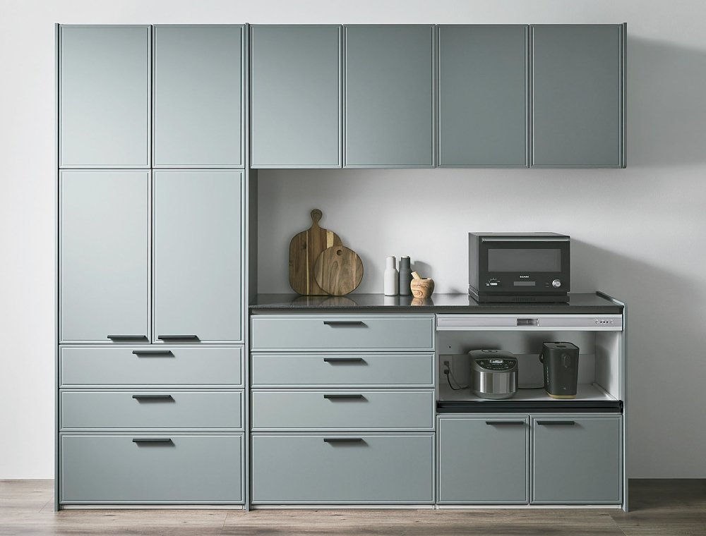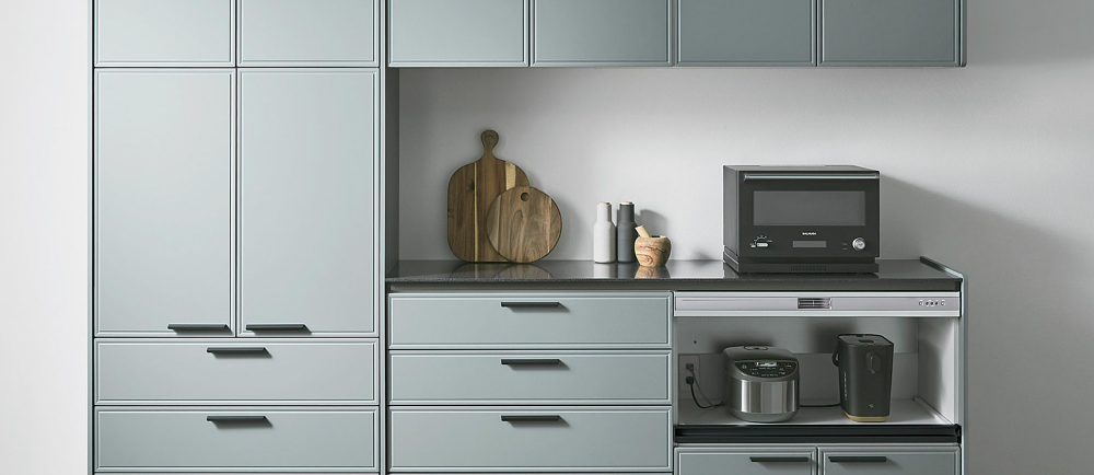 さまざまな機能と豊富なサイズバリエーションのキャビネットをご用意。 暮らしや設置場所に合わせて収納ユニットをつくることができます。