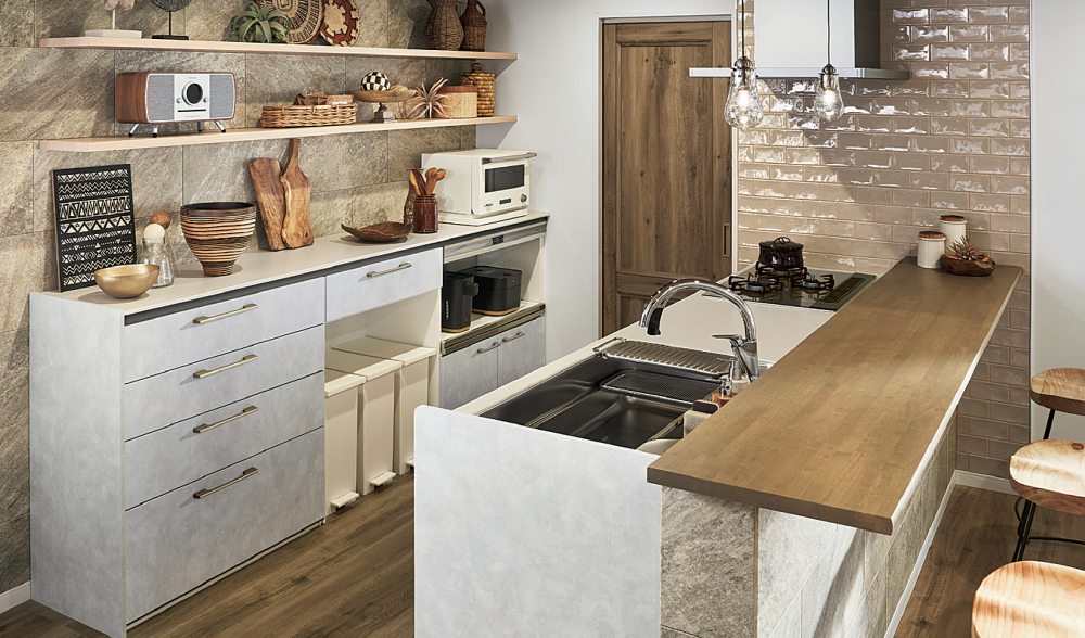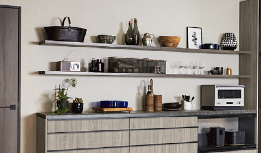 好きなオブジェや雑貨などをディスプレイすることで、よりオシャレなキッチン空間が 実現します。
