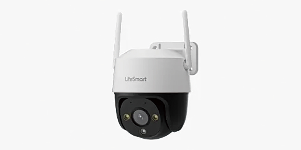 自動追尾機能で不審者を確認、フラッシュやブザー音による威嚇も可能。