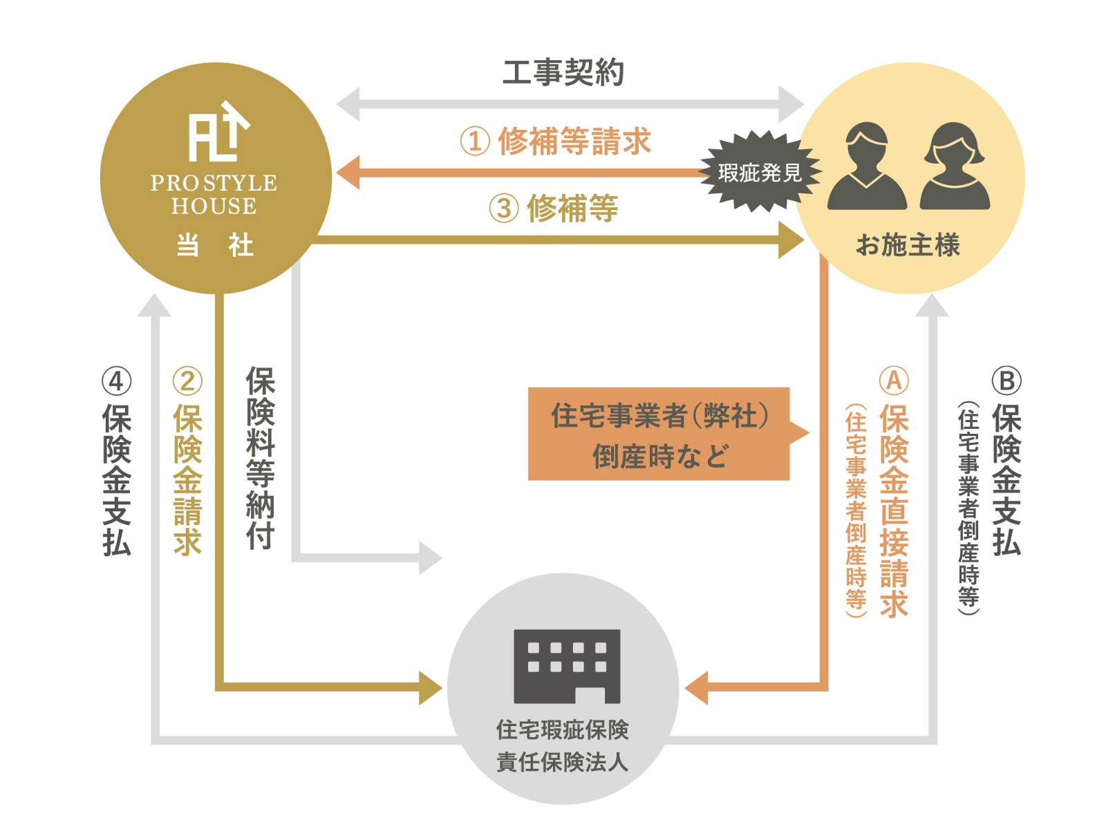 当社では万が一、当社が倒産等で保証責任を履行できない場合に備えて新築住宅向け瑕疵保険に加入しています。
