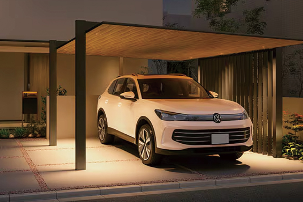 大切な愛車を雨風、紫外線から守る。外構全体の防犯対策としても有効。