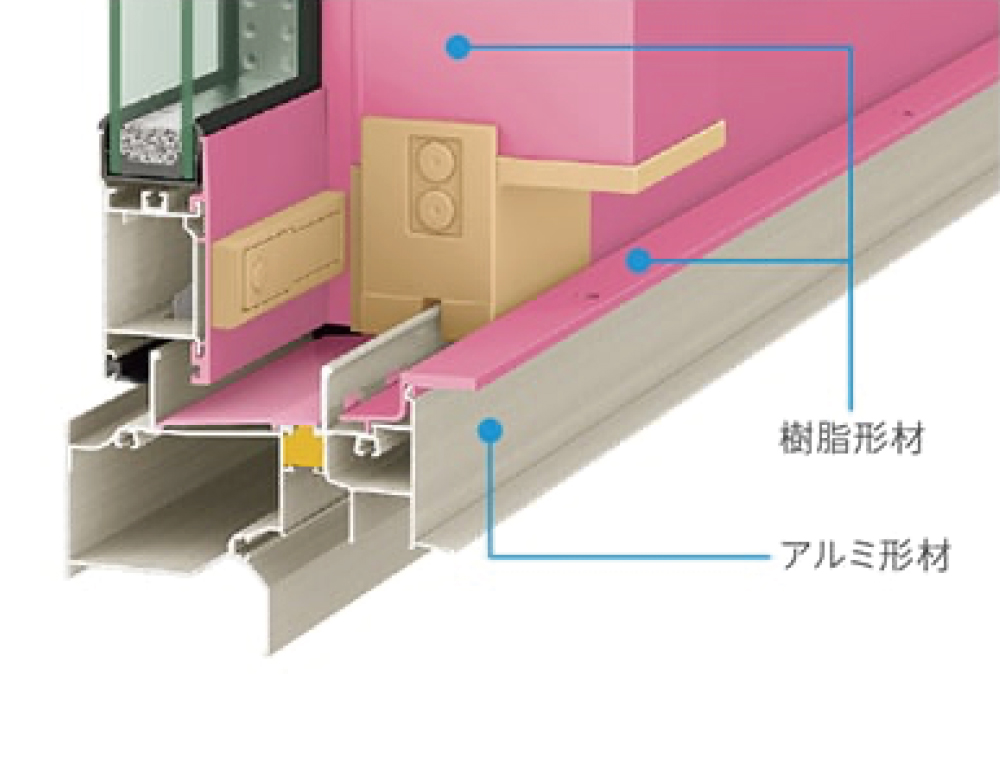 室外側は耐久性や強度に優れたアルミを採用し、雨、風、日差しによる劣化を防止。