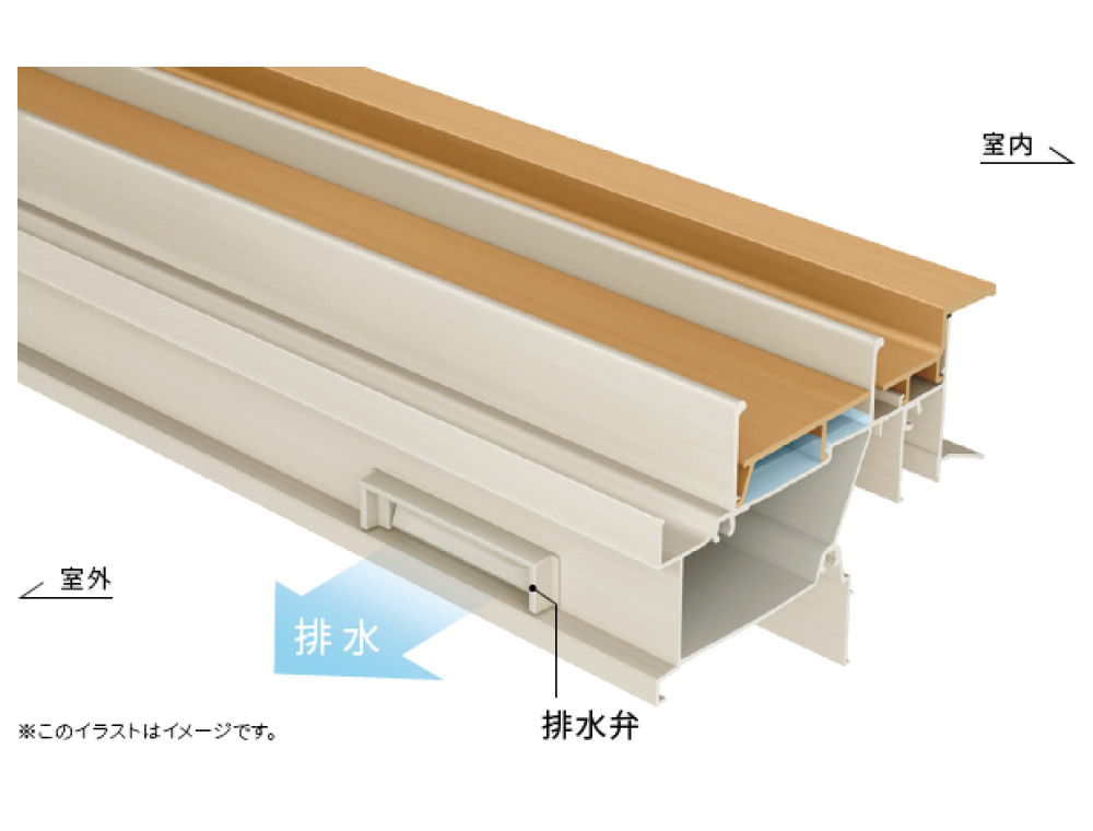 引違い窓の下枠は、雨などの水もスムーズに排水される構造になっています。