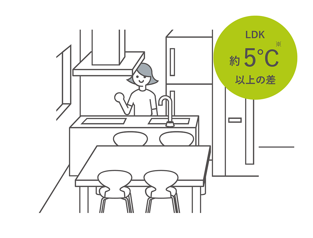 日射を直接受ける屋根は、夏の室温上昇を招く最大の要因。高性能な断熱により、最上階でもムッとしない涼しさを実現し、冬の暖房熱も逃がさず、年間を通して快適な空間をつくります。