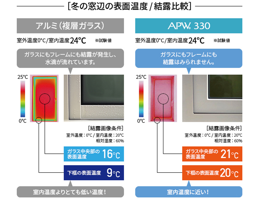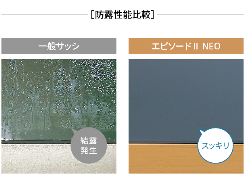 ※結露の発生は窓の性能だけではなく、住まいや自然環境にも影響されます。室内の条件によって結露が発生する場合もあります。