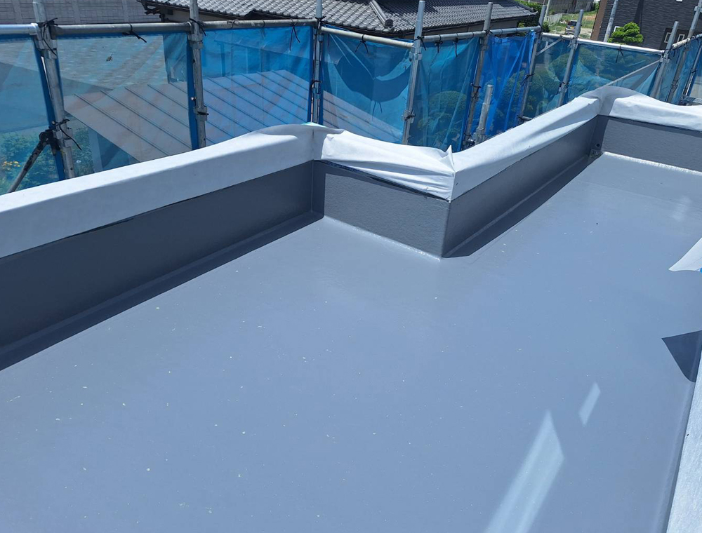 FRP防水は、船体やプールにも使われる強いプラスチック素材を使った防水方法です。軽くて丈夫なうえに、継ぎ目のない仕上がりで雨水の侵入をしっかり防ぎます。耐久性が高く、バルコニーや屋上を長く安心して使える人気の防水工法です。