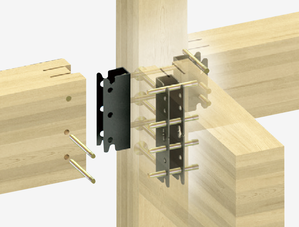 梁同士、梁と柱をつなぐ重要な金物。建物全体の強度と安全性を高め、また、横架材の相互の接合にも使用することで梁の脱落を防止します。