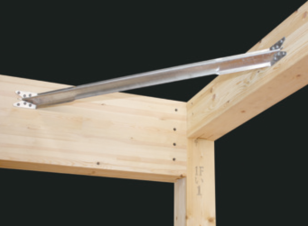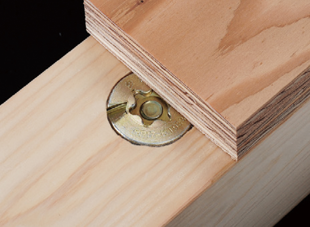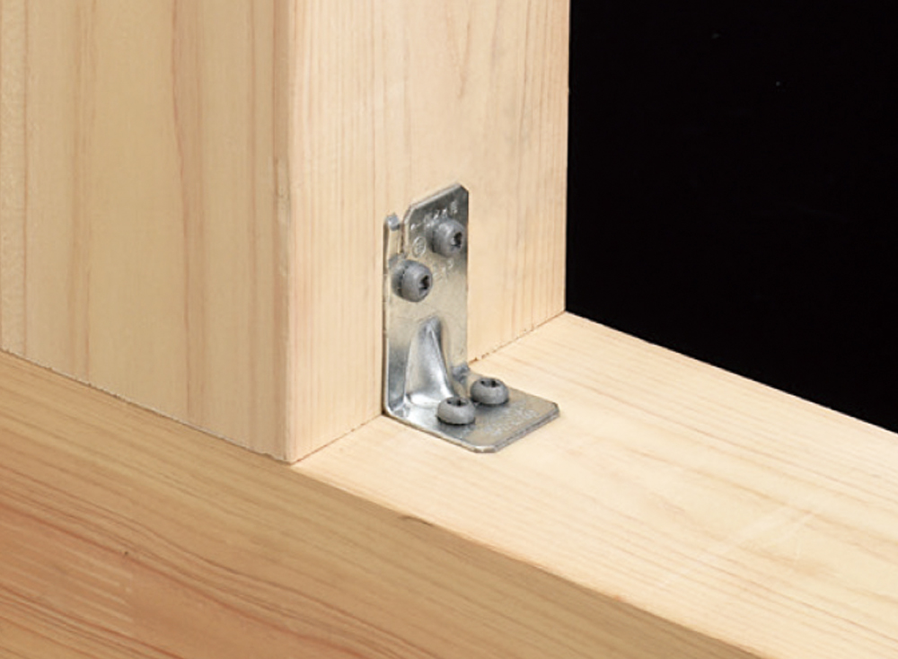 床や屋根の隅部分のゆがみ(ねじれ)を防ぐための重要な接合金物。構造全体をしっかり固め、四角い形を保つ=建物の安定性を維持します。