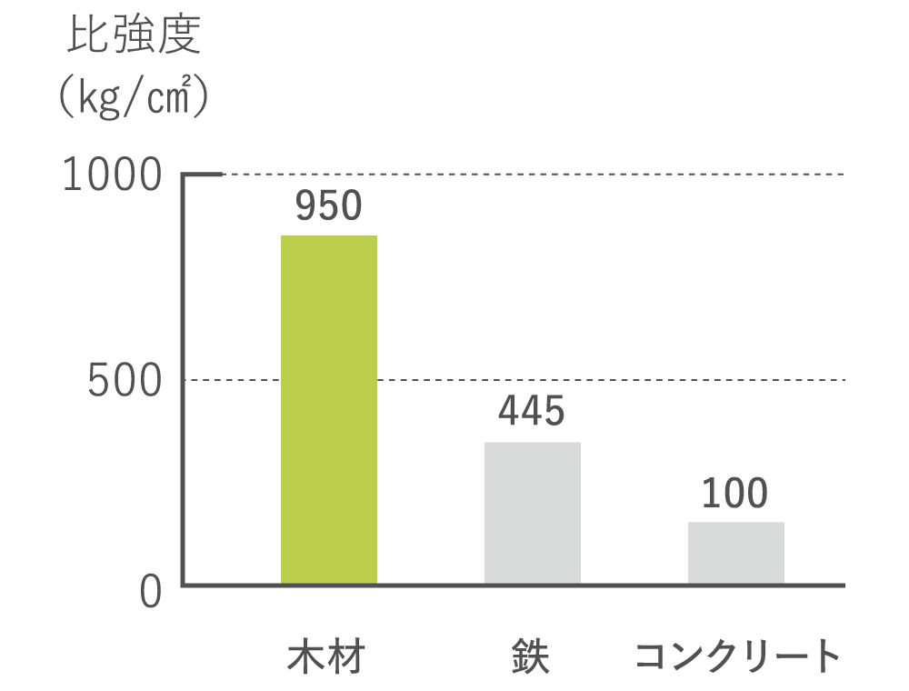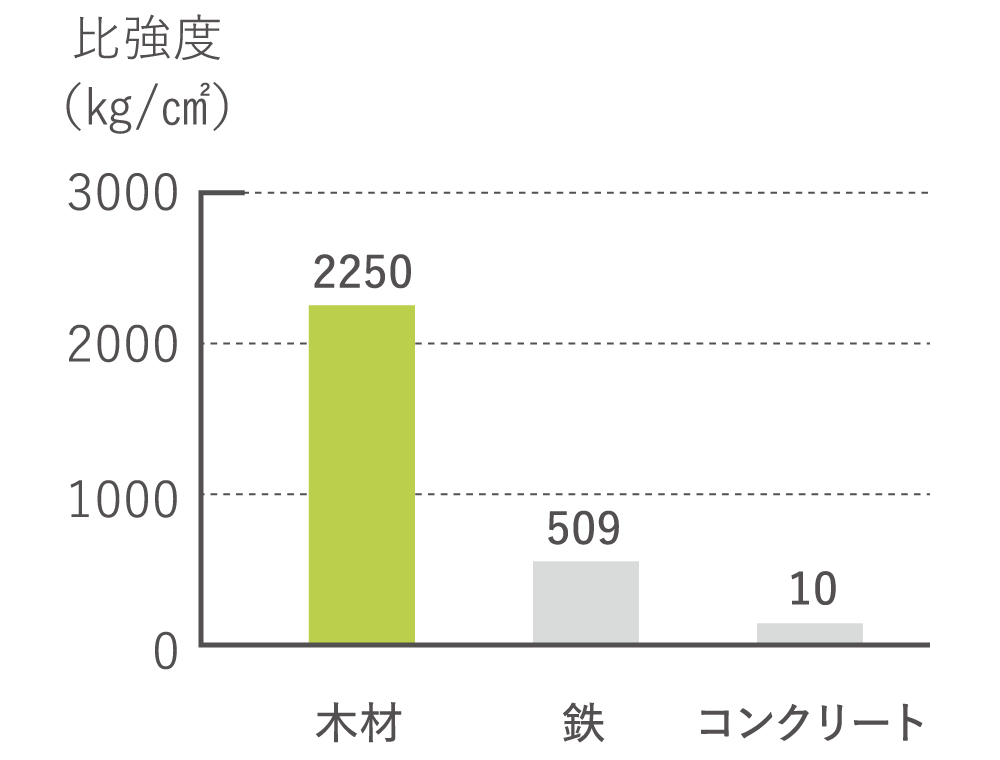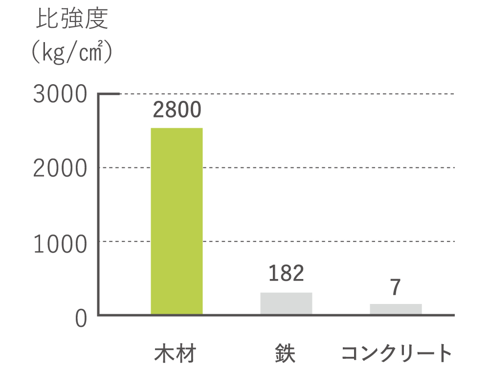 ① 建築物が歪みにくい → 乾燥による変形が少ない