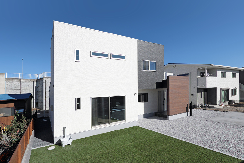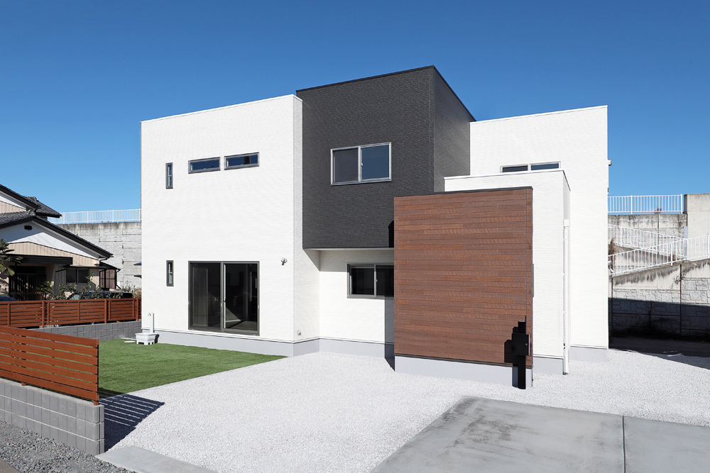 色彩のコントラストで魅せる現代モダン住宅は、シャープで印象的な外観が目を引きます。明るさと深みのある色の組み合わせが空間にリズムを生み、シンプルながらも存在感のあるデザインに。暮らしの中で自然に目に入る景色が、日常にアクセントと心地よい刺激をもたらす住まいです。