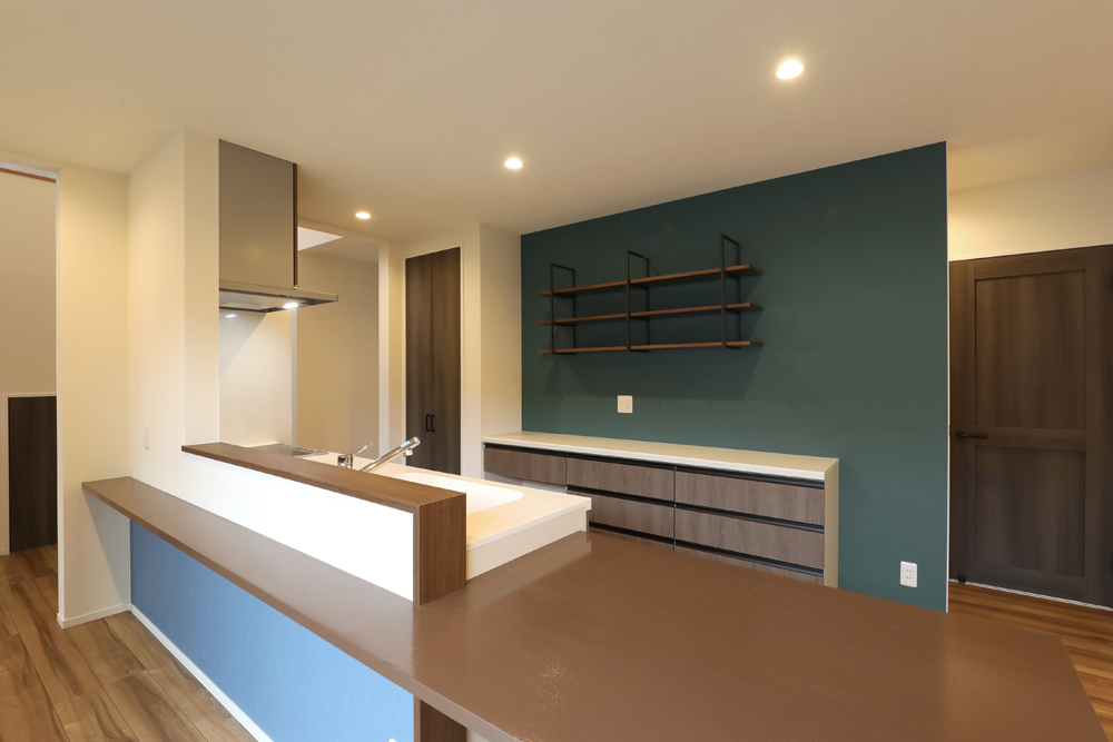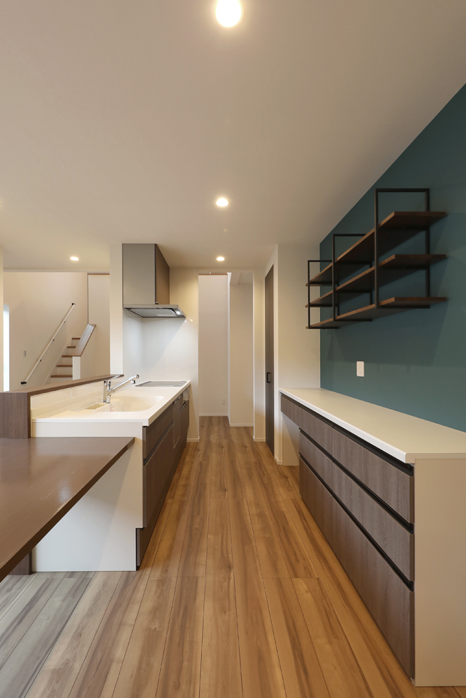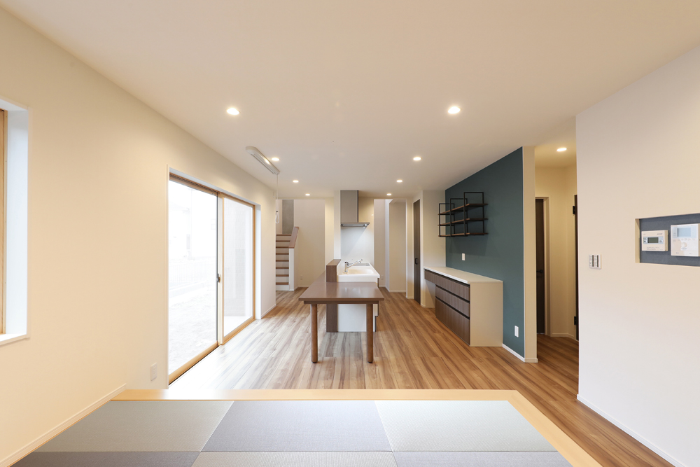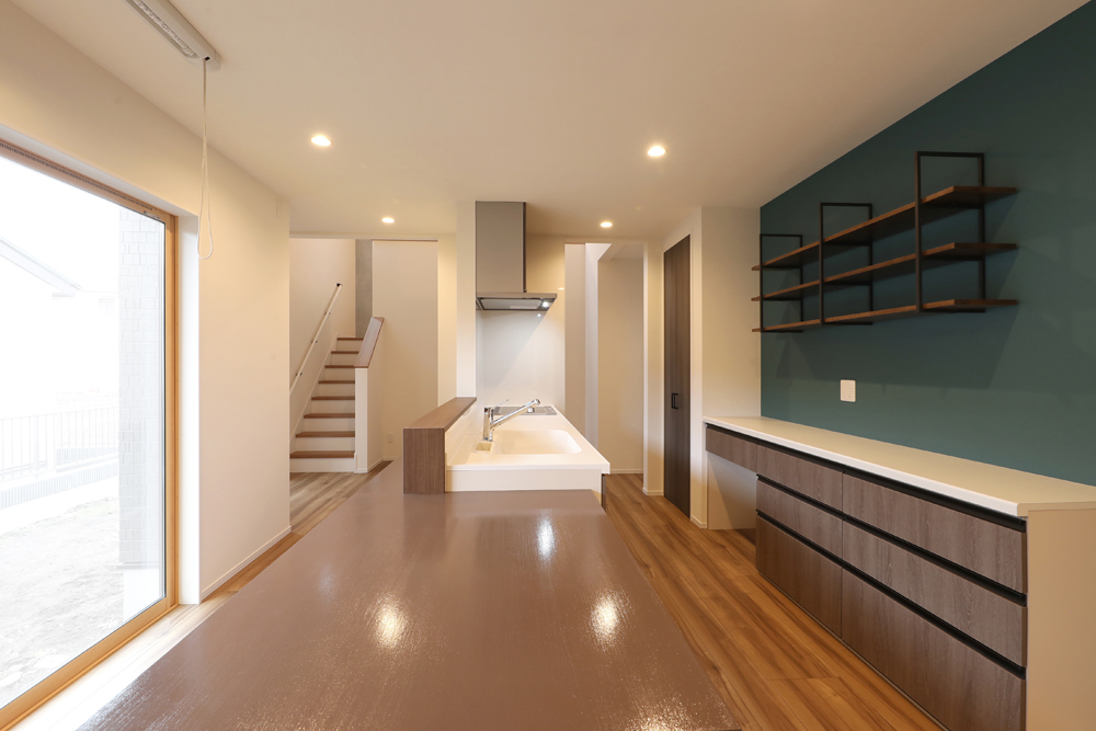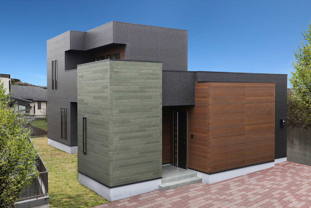 個性を超えた美しさを宿す、直線で描かれたモダン住宅。シンプルで力強いラインが建物全体に統一感と洗練をもたらす一方、室内には個性的なデザインや温かみのある素材がアクセントとして加わり、暮らしにやさしい表情を添えます。落ち着きと上質さを兼ね備えた空間は、家族の日常に心地よさと豊かさをもたらす住まいです。