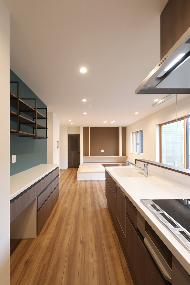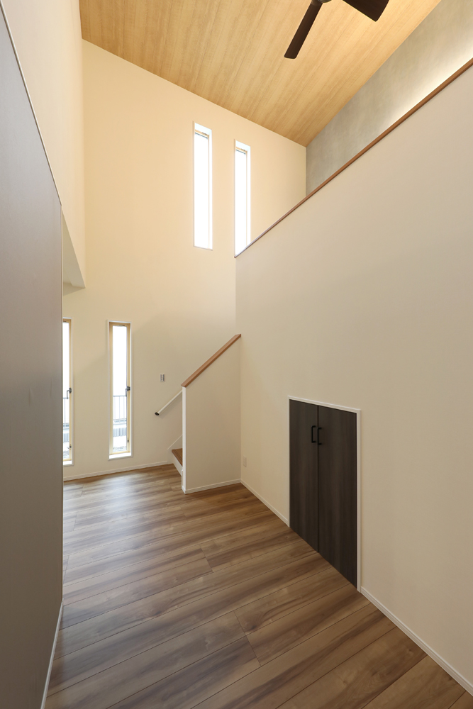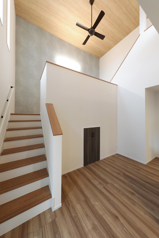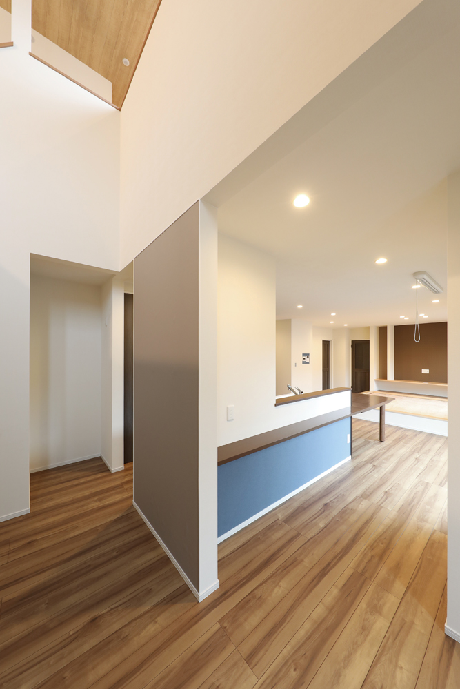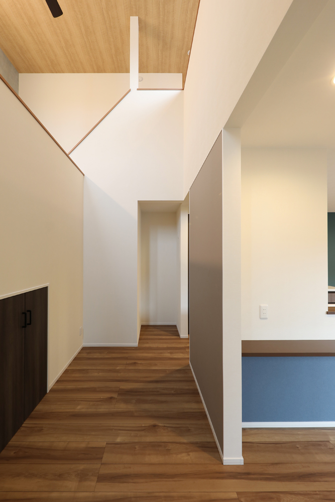 個性を超えた美しさを宿す、直線で描かれたモダン住宅。シンプルで力強いラインが建物全体に統一感と洗練をもたらす一方、室内には個性的なデザインや温かみのある素材がアクセントとして加わり、暮らしにやさしい表情を添えます。落ち着きと上質さを兼ね備えた空間は、家族の日常に心地よさと豊かさをもたらす住まいです。