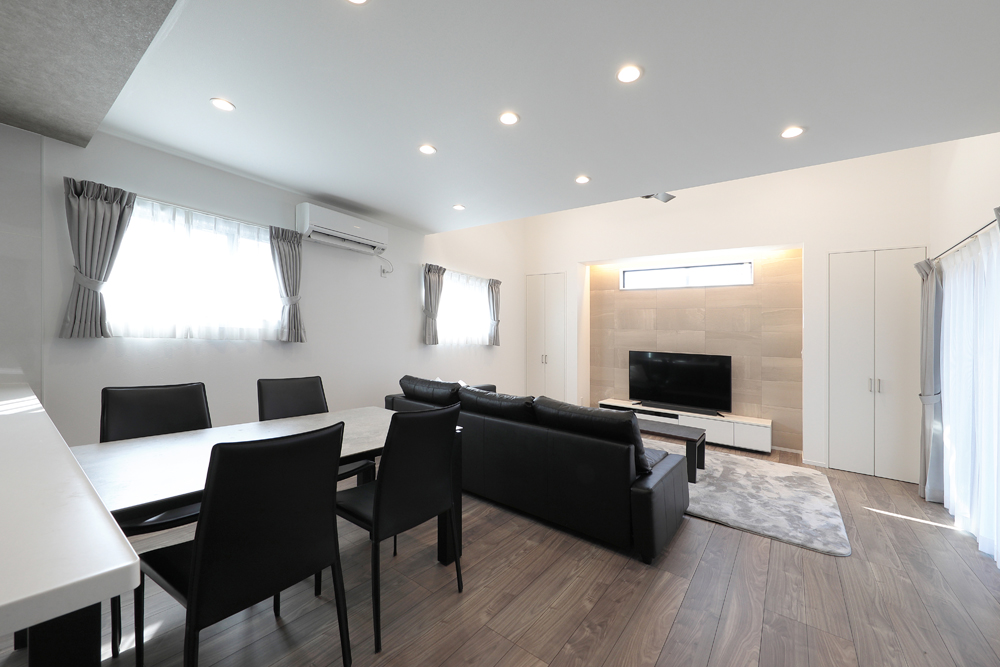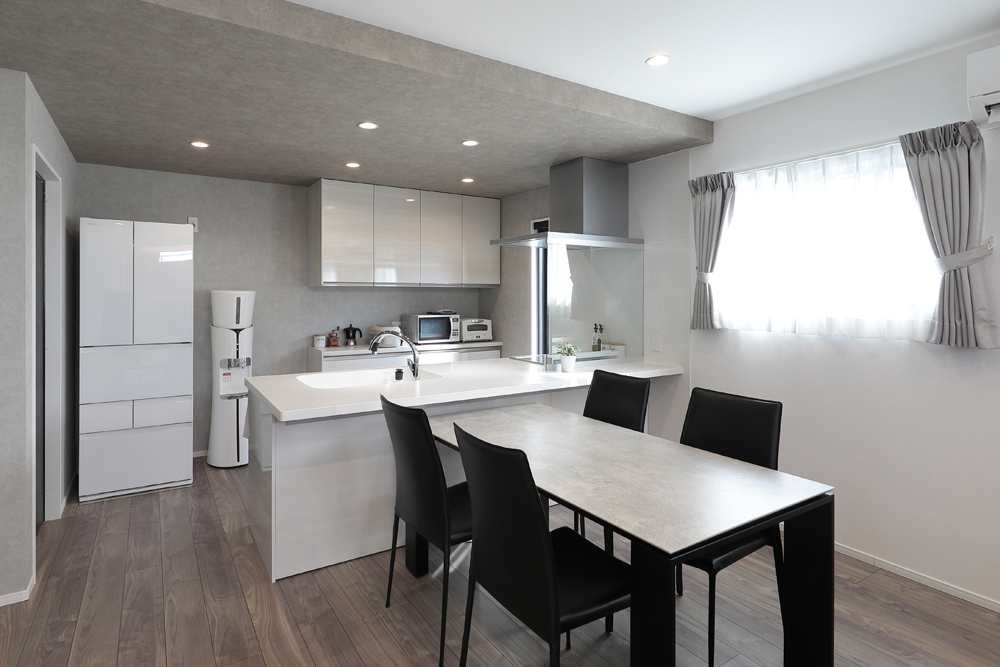 深緑が印象的な外観が静かで美しいモダン住宅。落ち着いた自然の色彩と洗練されたデザインが調和し、周囲の景色に溶け込みながらも存在感を放ちます。光や影の移ろいが室内に豊かな表情を生み、居心地のよい空間を演出。家族の時間や日常のひとときが、深緑の落ち着きに包まれ、穏やかで上質な暮らしを実感できる住まいです。